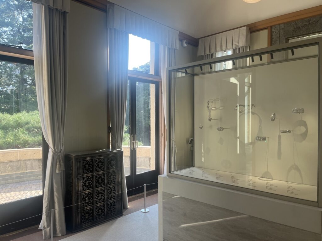 旧朝香宮邸という建築そのものが“展示空間の一部”として、重厚な扉、曲線の手すり、幾何学模様の床、光を反射する壁面が、ヴァン クリーフ&アーペルの作品に宿る造形感覚と共鳴していました。ジュエリーというミクロの芸術と、建築というマクロの芸術。そのスケールの異なる2つが、互いに光を投げ合うような時間を体験できることは、この展覧会の魅力でしょう。