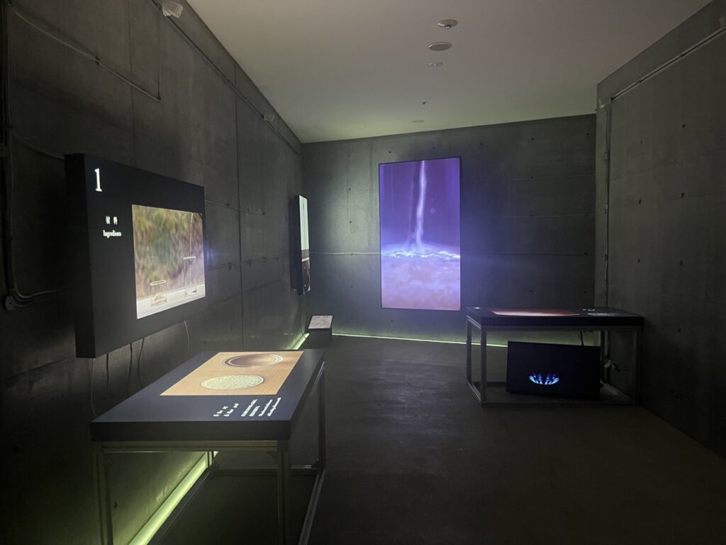 包む、味わう、満たすなど、動詞を軸にしたゾーンを順にめぐり、はじまりへの回帰から再生、分かち合いへと至る、いのちの循環を体験します。動詞が示す行為の変化がそのまま空間の変化となり、鑑賞者の身体感覚が自然にシフトしていく展示構成です。
